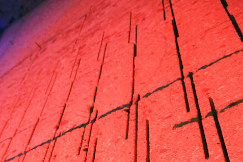 ![]() 宇都宮にただ電車に乗って行ってみたかっただけなので、 特に目的地があるわけでもなく、、、目的は無理やり作る! 駅前からバスに乗って約30分、、、山あいにある 大谷石(おおやいし)の採掘場跡にやってきました。 ![]() 大谷資料館 大正時代から昭和の終わりまで、大谷石を掘り出していた採掘場の 跡に建てられた資料館で、地下の採掘場跡も公開されています。 資料館には、大谷石の歴史や、採掘に使われた道具などを展示。 写真は、石を切り出すのに使われていたチェーンソーです。 ![]() さて、いよいよ地下の採掘場跡に下りていきます。 内部の気温は約10度ということで、すでにひんやりとした空気が漂っています。 ![]() 階段を下りると、いきなり広大な空間が目の前に。 四角い形に空間が切り取られているところが、 ただの洞窟とは違って、明らかに人工的な感じ。 ![]() 順路が整えてあるので、それに従って進んでいきます。 この地下の空間は格子状に広がっていて、幅も奥行もかなり広いです。 石の壁が続いていますが、これは石の柱と表現した方が正しいかも。 石の天井を何本もの石の柱が支えている、そんな空間です。 ![]() 石の壁を近くで見ると、きれいな模様がついているのがわかります。 これはツルハシなどで手掘りしていた頃の壁の模様。 ![]() こちらはチェーンソーなどを用いて機械化された後の壁。 チェーンソーの刃が入った後が残っていますね。 ところどころ、丸ノコの刃の跡らしき円弧の模様も見えます。 ![]() 近年は、この幻想的な空間を活かして、映画やミュージックビデオの撮影、 コンサートや美術展などのイベント、などに利用されているそうです。 ![]() こちらは、あの假屋崎省吾先生の作品にござりまする。 ![]() 戦前は戦闘機の秘密工場、戦後は政府米の備蓄庫としても 使用されていたそうです。 時代の移ろいとともに、新たな活躍の場を広げていったようですね。 2015/07/04.Sat.