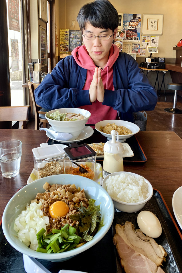 ![]() 大勝軒まる秀 沼津店 春休みに入って(ちひ)が帰ってきました。数日ですが。 その間に行きつけのラーメン屋さんに仁義を切って回るようです。 いそがしいねぇ。 (鬱で)がいただいたのは、限定メニューのまぜそば。 追い飯に、マヨネーズをふんだんにまぜまぜして、 ウマウマ言いながらいただきました。 2024/3/16.Sat.