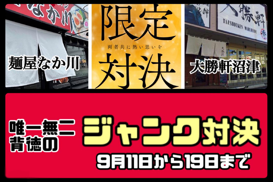 ![]() 4〜6月に行われた、2店の限定バトル。 新しいシリーズが始まりました。 第1弾は、食材縛りではなく、ジャンル指定。ジャンク対決です。 ジャンキーとしては楽しみな対戦です。 ![]() 大勝軒まる秀 沼津店 スタミナジャンク 牛ホルまぜそば ホルモンは好きなのですが、当たり外れがあるので、ドキドキしながら いただきました。このホルモンはぷりっぷりで美味しかったです! 当たりでした。 2025/9/13.Sat.